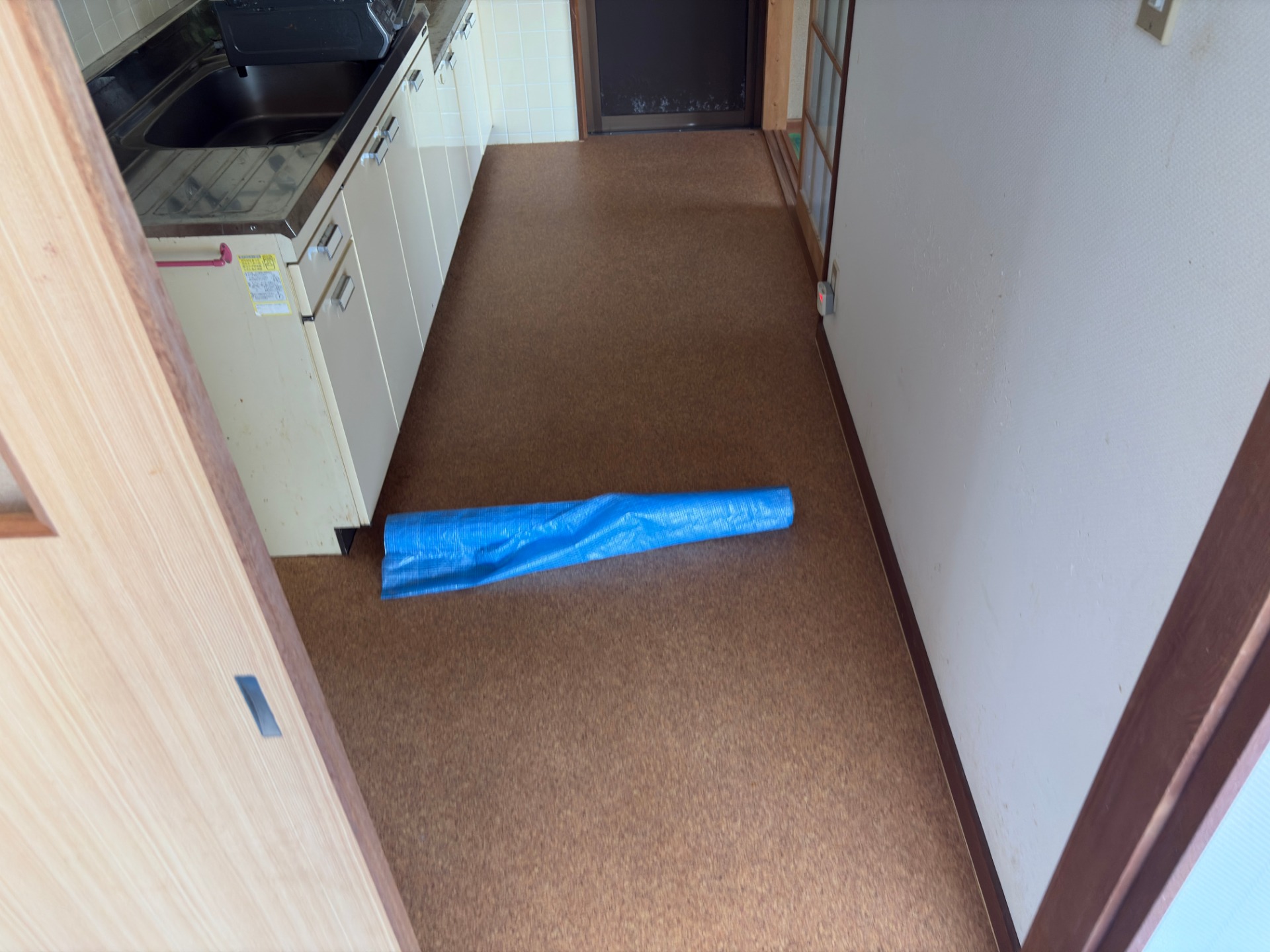 いつもお仕事いただくオーナー様の現場でこちらでは壁紙の貼替、キッチン入替、床部分貼替、畳表替、カーポート解体等の外構工事もあります。